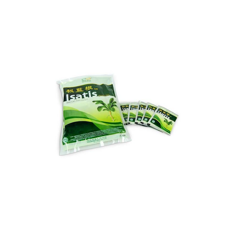 20 sáčků á 10 gramů, BAN LAN GEN jsou žluto-hnědé ve vodě rozpustné granule. Chuť je mírně nasládlá.